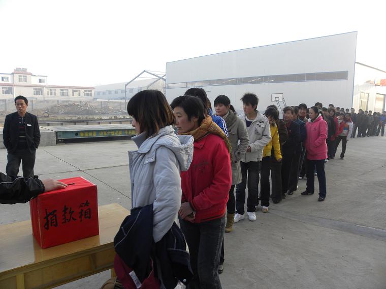 图为公司踊跃排队捐款